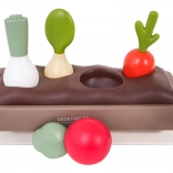 Setul include 88 de piese diferite, incluzând tablă de scris cu cretă, ou fiert, vase și replici de mâncare, pentru idei de joc creative în bucătărie.