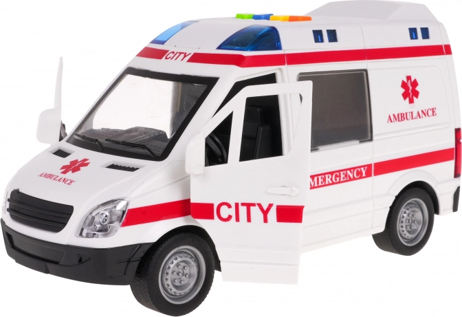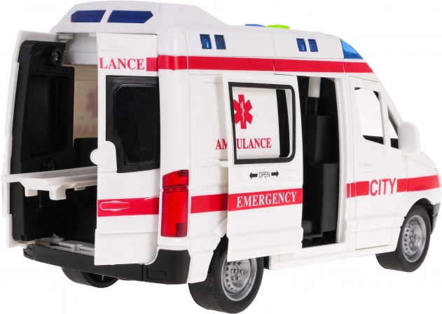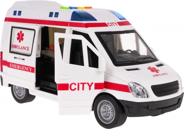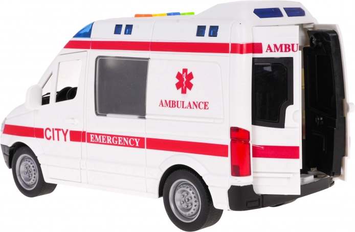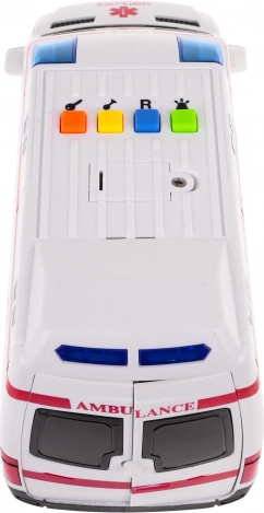 Ambulanță interactivă la scară 1:16, cu efecte realiste de sunet și lumină, ideală pentru copiii de la 3 ani. Acest model este echipat cu părți mobile, precum uși laterale și spate care se deschid. Ambulanța se poate deplasa înainte și înapoi datorită tracțiunii pe roțile din spate, iar anvelopele din cauciuc asigură o aderență mai bună.