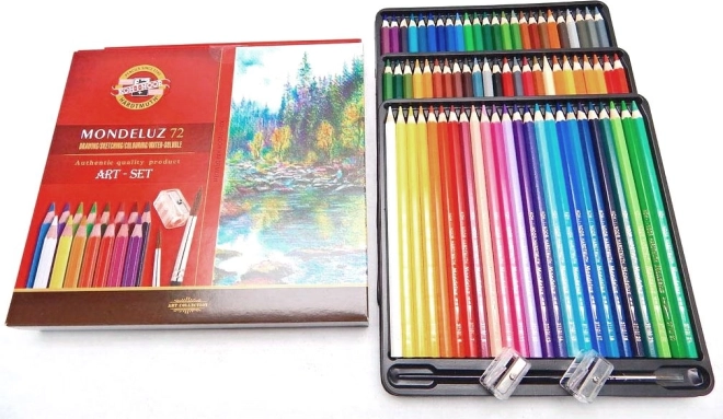 Setul de 72 de creioane acuarelă hexagonale KOH-I-NOOR Mondeluz îi va încânta pe toți micii artiști și pe școlari. Creioanele se remarcă prin rezistența la lumină, puritatea culorilor și gama cromatică largă. La aplicarea apei cu pensula, urma lor poate fi complet estompată, permițând apoi utilizarea tehnicii de desen în acuarelă.
