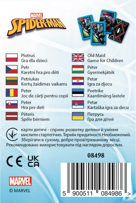 Căutați perechi identice cu eroi din lumea SPIDERMAN și scăpați de toate cărțile înaintea celorlalți. Pachetul conține 25 de cărți (12 perechi + 1 Negru Petru), așa că vă așteaptă mult suspans și voie bună la fiecare tură. Jocul are runde rapide, fiind ideal atât pentru pauze scurte, cât și pentru sesiuni mai lungi în familie.