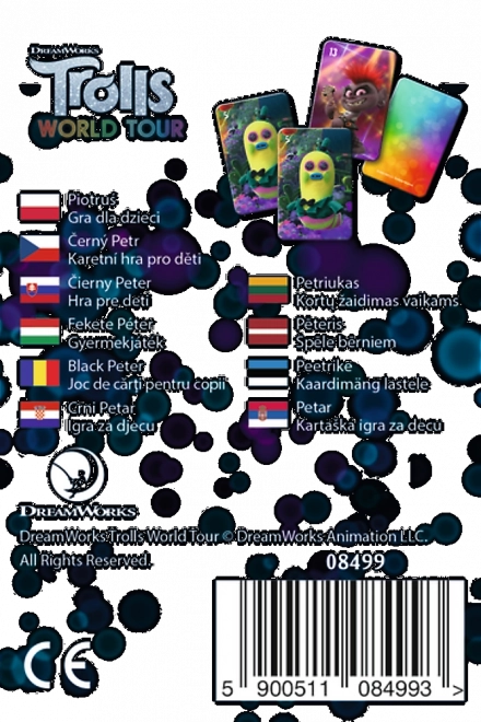 Jocul tradițional Negru Petr, în licența TROLLS, îi va încânta atât pe copii, cât și pe adulți. În pachet găsiți 25 de cărți într-o cutie practică din carton. Jocul este ușor de explicat, rapid de jucat și dezvoltă excelent spiritul de observație, concentrarea și abilitățile sociale.
