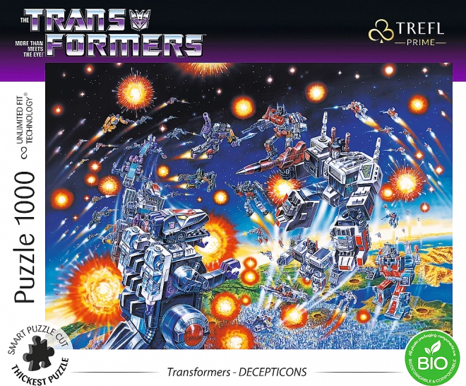 Descoperiți posibilități infinite de asamblare cu puzzle-ul TREFL UFT Transformers: Decepticoni cu 1000 de piese. Datorită Unlimited Fit Technology puteți combina liber motivele și crea colaje mari fără margini fixe. Puzzle-ul se remarcă prin cea mai înaltă calitate, forme unice ale pieselor și îmbinări solide, astfel încât imaginea asamblată poate fi mutată cu ușurință. De asemenea, dispune de ambalaj eco fără folie de plastic.
