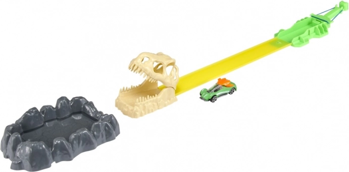 Setul Teamsterz cu mașinuță Dino Roar oferă distracție nesfârșită pentru toți micii cursanți. Datorită lansatorului elastic, copiii vor experimenta multe momente de curse pline de tensiune. Pista de curse cu salt Dino, cu un singur sens, reprezintă o provocare de nerezistat. Este inclusă și o mașinuță care depășește cu fiabilitate fiecare obstacol.