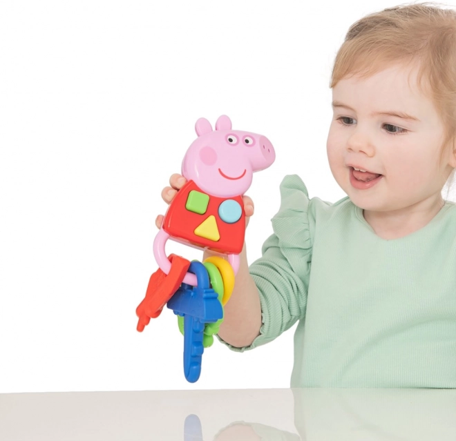 Descoperă lumea Peppa Pig cu aceste chei amuzante! Fiecare apăsare a unui buton aduce efecte luminoase și sonore care oferă copiilor ore de bucurie. Cheile colorate sunt proiectate astfel încât cei mici să le poată ține ușor datorită mânerelor de diferite forme.