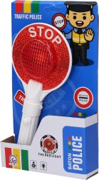 Paletă de poliție realistă pentru jocuri ale copiilor și exersarea comportamentului sigur. O parte luminează roșu, cealaltă verde; are efecte luminoase și baterii 3× AG13 incluse în pachet. Lungime compactă de 23 cm pentru o prindere ușoară.