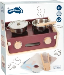 Acest aragaz de camping multifuncțional din lemn SMALL FOOT este conceput pentru distracție maximă și dezvoltarea abilităților. Copiii pot alterna gătitul, coptul, grătarul și spălatul datorită construcției cu două fețe, în care partea superioară și cea inferioară pot servi drept aragaz sau chiuvetă. Lemnul de calitate, combinat cu metal și textile, asigură durabilitate și o viață lungă de utilizare.