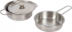 Pachetul conține tot ce este necesar pentru o mică expediție culinară: tigaie, oală cu capac, clește pentru grătar, spatulă din lemn, prosop de bucătărie și 2 coli din carton cu alimente/ingrediente. Datorită dimensiunilor compacte și mânerului din sfoară, este ideal pentru călătorii, camera copilului și grădină.