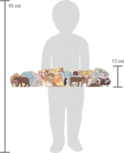 Puzzle-ul pentru copii este compus din 26 de piese în formă de diferite animale, precum alpaca, flamingo și pinguin, care sunt colorate cu literele alfabetului englez și german. Fiecare piesă este ușor de prins, iar copiii le pot folosi individual sau în ansamblu. Acest puzzle interactiv este nu doar distractiv, ci și educativ, ajutând copiii să recunoască literele și numele animalelor.