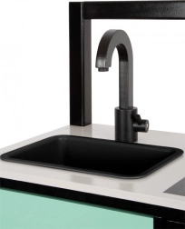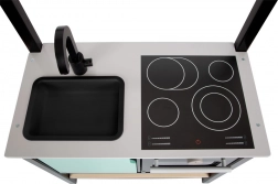 Pentru o experiență de joc maximă, nu lipsesc bateria cu pârghie pentru „reglarea temperaturii”, chiuveta din plastic detașabilă pentru „spălatul vaselor” și cuptorul cu tavă detașabilă. Fundul poliței poate fi folosit ca grătar. Dulăpiorul de sub blat și cârligele pentru ustensile mențin ordinea, iar partea stângă a dulăpiorului poate fi transformată cu ușurință în „frigider” sau „mașină de spălat vase”.