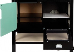 Dulăpiorul de sub blat, cârligele pentru agățarea ustensilelor și polița cu fund utilizabil ca grătar mențin ordinea. Partea stângă a dulăpiorului poate fi folosită ca „frigider” sau „mașină de spălat vase”.