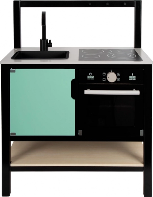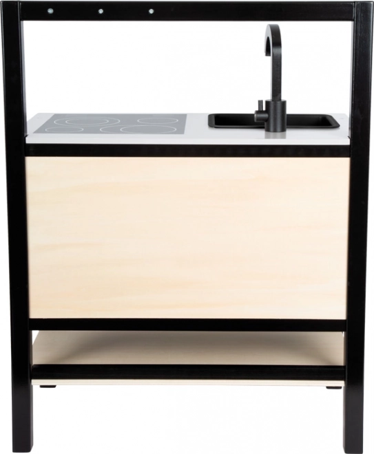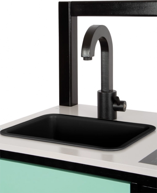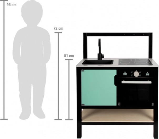 Această bucătărie de jucărie, vizual atrăgătoare, aduce un aspect industrial modern care va atrage privirile în orice cameră de copil. Construcția ușoară, dar stabilă, cu cadru negru permite mutarea ușoară, astfel încât locul de joacă poate fi schimbat rapid. Comenzile realiste, aparatele ilustrate și elementele funcționale stimulează imaginația și încurajează jocul independent.