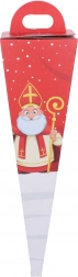 Elegantul cornet roșu cu motiv Moș Nicolae va bucura orice copil și va ușura pregătirea darurilor de sărbătoare. Datorită lungimii de 50 cm, încape o mulțime de bunătăți și atrage prin aspectul său clasic.
