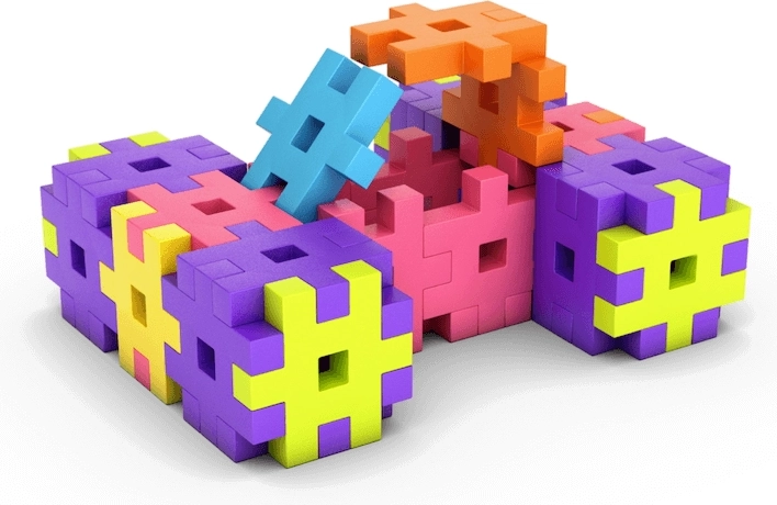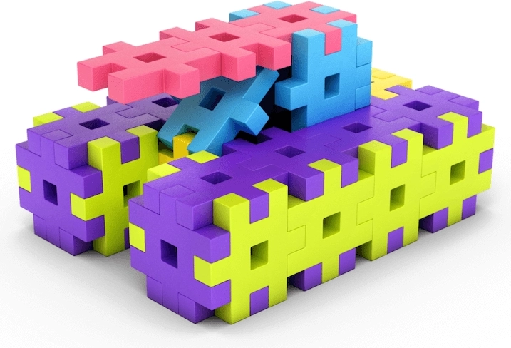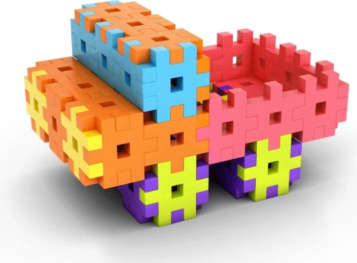 Suficiente elemente colorate, ușor de apucat, pentru a construi modele variate și pentru creații simultane ale mai multor copii – ideal pentru grădinițe și cluburi.