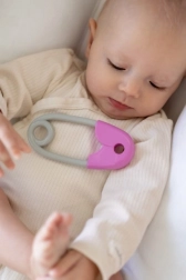 Jucăria zgomotoasă în formă de șnur este o piesă esențială în arsenalul fiecărui copil. Este concepută astfel încât să fie ușor de prins pentru micile mâini și să nu îngreuneze mâinile copilului datorită greutății sale ușoare. Culorile sale contrastante roz-gri atrag privirile și susțin percepția vizuală. Copiilor le va plăcea zgomotul blând care vine cu fiecare mișcare.