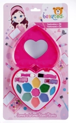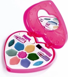 Trusă de frumusețe concepută în formă de inimă cu capac transparent și oglindă, care va stimula creativitatea și experiența stilată.