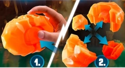 - Element de cristal – dragonul „sparge” un cristal mare cu cornul său, pentru momente de joc dramatice.