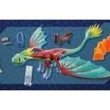 Cu acest set de construcție, copiii pășesc cu ușurință în lumea magică a dragonilor. Dragonul are picioare, partea superioară a capului și aripi mobile, care pot fi orientate în toate direcțiile. Penele de pe partea din spate a capului și vârful cozii sunt realizate din material moale pentru un joc mai sigur și mai realist.
