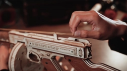 Această machetă mecanică din lemn oferă o experiență realistă a iconicului pistol-mitralieră THOMPSON. Datorită tăierii laser precise, piesele se potrivesc perfect, iar asamblarea este lină și satisfăcătoare. După finalizare, obții un model impresionant cu mecanism funcțional pe elastice, care chiar trage.