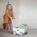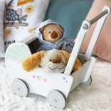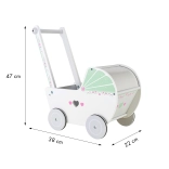 Acest cărucior din lemn pentru păpuși este un cadou ideal pentru orice fetiță care iubește să aibă grijă de păpușile și plușurile ei. Căruciorul le permite copiilor să se joace de-a mama, iar jocul cu el aduce multă bucurie și susține dezvoltarea imaginației. Căruciorul este ideal pentru joaca în interior, roțile sunt prevăzute cu o bandă de cauciuc care protejează podeaua de zgârieturi.