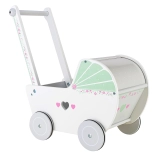 Întregul cărucior este realizat din lemn de calitate și vopsit cu culori sigure pentru copii.