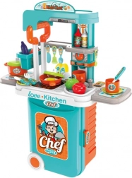 Această bucătărie inovatoare este un plus minunat pentru camera copilului sau pentru călătorii, deoarece se poate desface cu ușurință într-o versiune de masă sau clasică. Include multe accesorii precum vase și alimente, permițând copiilor să creeze o multitudine de aventuri culinare.