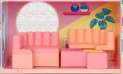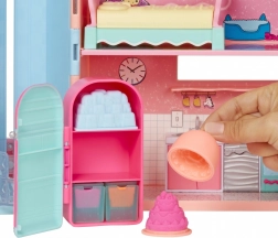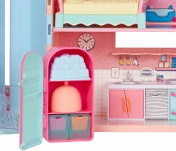 Căsuța este decorată în nuanțe pastelate și include diverse camere și accesorii pentru o joacă perfectă.