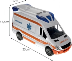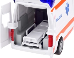 Trei butoane pe acoperiș activează efecte puternice de lumină și sunet, care reproduc fidel o ambulanță reală. Bateriile 2× AA sunt incluse în pachet.