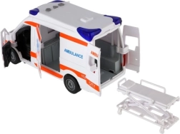 Această ambulanță din plastic reproduce fidel un vehicul de urgență real – de la inscripții până la funcții. Copiii se vor bucura de trei butoane pe acoperiș pentru activarea luminilor și sirenelor, iar ușile din față, laterale și din spate oferă acces la un interior detaliat. Este inclusă o targă pliabilă și extensibilă, cu care pacientul poate fi ușor „încărcat” în vehicul.