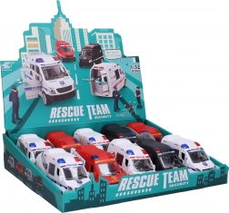 Mașina compactă de salvare cu mecanism de inerție, lungime 12 cm, îi va încânta pe micii fani ai acțiunii și ai serviciilor de urgență. Oferă uși față și spate funcționale, deplasare cu mecanism de inerție și patru variante realiste – POMPIERI, AMBULANȚĂ, POLIȚIE albă și POLIȚIE neagră.