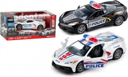 Această mașină de poliție din metal este realizată din materiale de calitate și atrage atenția prin aspectul său realist datorită detaliilor fine. Copiii pot alege între două variante de culoare – negru elegant sau alb clasic. Cu funcția de întindere în spate, mașina se mișcă ușor înainte, garantând ore de distracție.