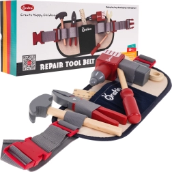 Setul de unelte din lemn cu centură este perfect pentru fiecare mic meșter de la 3 ani. Conține unelte din lemn precum ciocan, clește, burghiu, șurubelniță, măsură și cheie plată, care sunt sigure și rezistente.