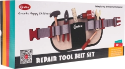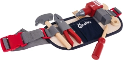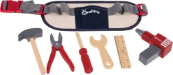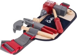 Centura pentru unelte este reglabilă și se închide cu o cataramă, conține un buzunar central și cinci compartimente pentru depozitarea tuturor uneltelor din set. Copiii se pot juca cu bucurie de-a reparatorii și își pot dezvolta imaginația.