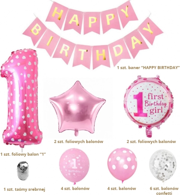 Set de baloane pentru aniversarea unei fetițe - roz