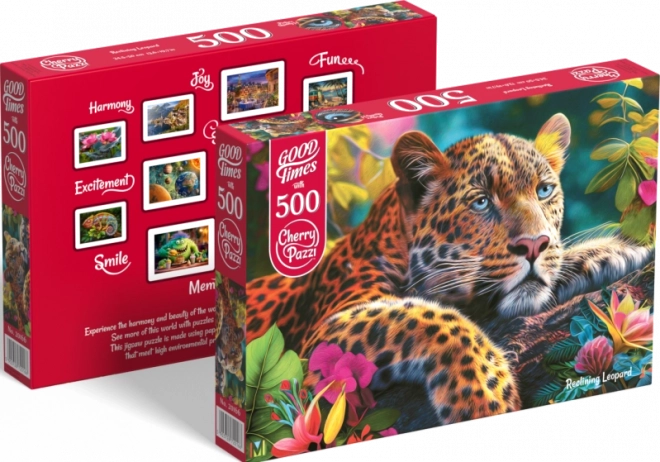 Puzzle CHERRY PAZZI cu motivul leopardului culcat vă va impresiona prin detalii și calitate. Puzzle-ul este format din 500 de piese, fiind o modalitate ideală de a petrece timpul liber și de a-ți exersa răbdarea.