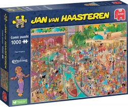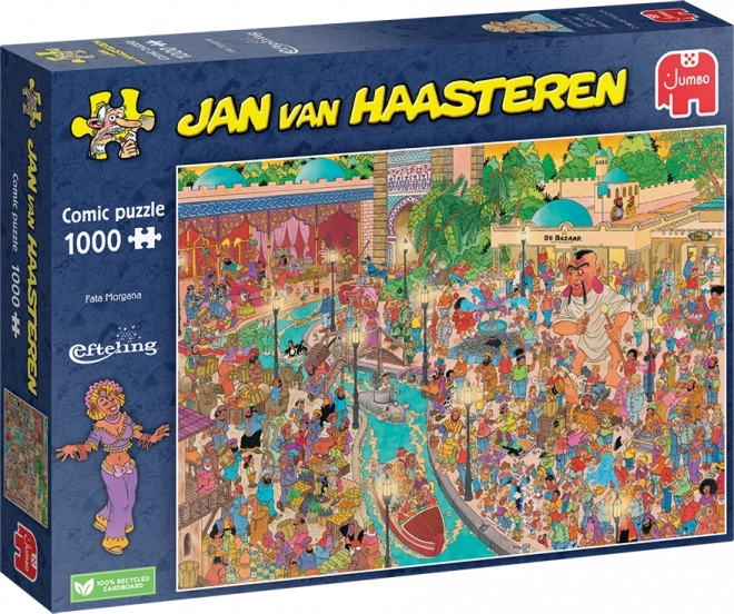 Bucurați-vă de ore întregi de distracție cu puzzle-urile JUMBO de calitate din colecția Jan van Haasteren. Ilustrația „Efteling Fata Morgana” aduce umorul tipic, numeroase scene mărunte și motive ascunse precum înotătoarea de rechin, mâini rătăcitoare sau portretul lui Haasteren. Datorită celor 1000 de piese și graficii colorate, pline de detalii, asamblarea este captivantă pentru întreaga familie.