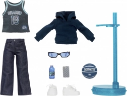 Păpușa are un echipament sportiv original cu un tricou de baschet stilat și numărul '19', subliniind simțul său pentru modă.