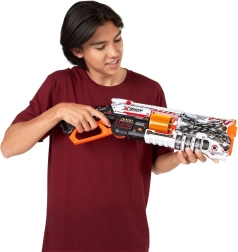 Cilindrul rotativ permite reîncărcarea rapidă și lansarea săgeților pentru distracție acțiunii neîntrerupte.