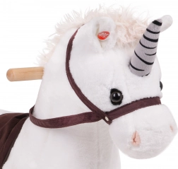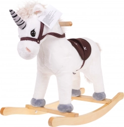 Șeaua este concepută pentru confort și siguranță, mânerele din lemn oferă o prindere sigură, iar patinele contribuie la o mișcare lină de balans. Joaca pe unicorn dezvoltă motricitatea, echilibrul și imaginația copiilor.