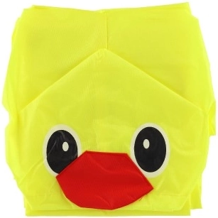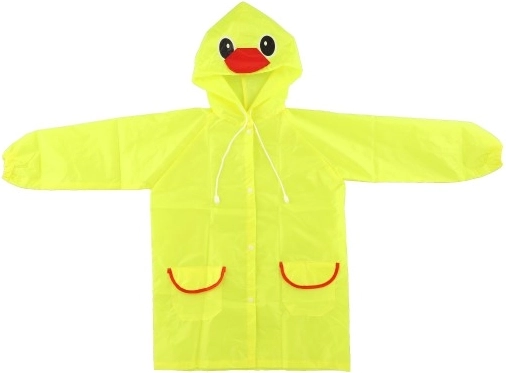 Pelerina este echipată cu o glugă cu ochi și cioc, ceea ce face ca fiecare zi ploioasă să fie o experiență distractivă.