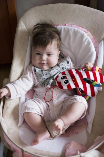 - Materiale sigure: realizată din textile certificate, blânde cu pielea copilului.
