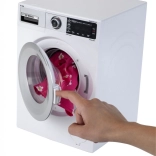 Datorită reproducerii credibile și efectelor sonore realiste, copiii se vor bucura de o distracție grozavă simulând spălarea. Mașina este echipată cu un tambur rotativ, funcție de umplere și evacuare a apei și poate fi alimentată cu baterii sau mecanic, cu ajutorul manivelei.