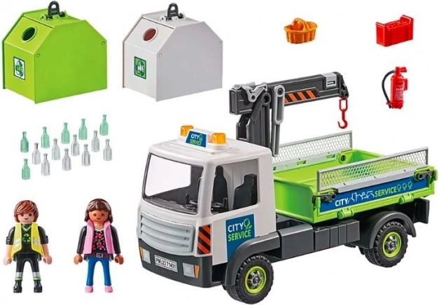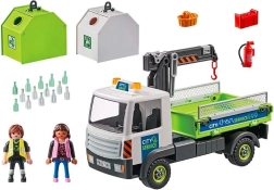 Marea macara ridică fără probleme containerul cu sticle și îl încarcă pe remorca camionului. Datorită numeroaselor detalii și funcții realiste, aceste seturi din gama PLAYMOBIL City Life sprijină ajutorul la curățenie în oraș, încurajând copiii de la 4 ani să învețe despre protecția mediului prin joacă.