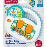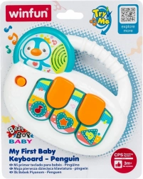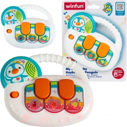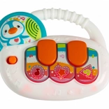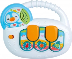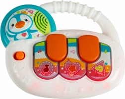 Pianino pinguin oferă distracție grozavă pentru micii muzicanți. Este echipat cu trei butoane portocalii mari care, la apăsare, redau melodii vesele și efecte luminoase. Datorită mânerului practic, se transportă ușor, ceea ce îl face jucăria ideală pentru drum.