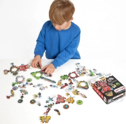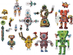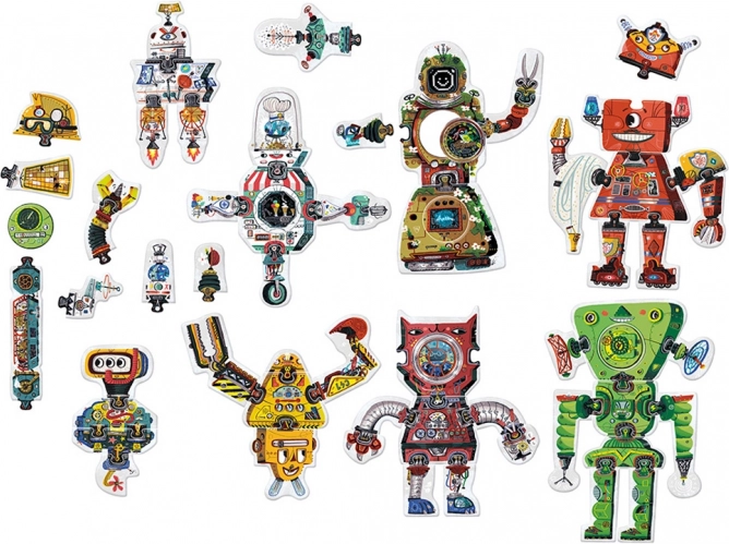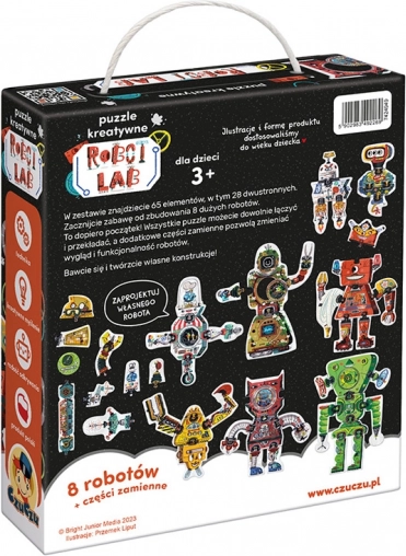 Puzzle-ul creativ Robot Lab aduce posibilități nelimitate de asamblare. Baza o constituie 63 de piese de calitate, lucioase și decupate cu precizie, care se potrivesc excelent datorită formei ingenioase și ilustrațiilor. Copiii asamblează mai întâi 8 roboți mari, apoi, cu ajutorul pieselor „de schimb”, le modifică înfățișarea – sau creează personaje și mașini complet noi.