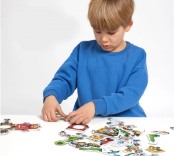 Un set mare de piese cu ilustrații colorate oferă mereu idei și scenarii noi pentru joc liber.