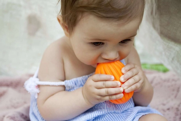 Materialul moale și suplu și formele compacte facilitează prinderea cu mâinile mici. Ideal pentru strâns, rostogolit și transfer dintr-o mână în cealaltă.
