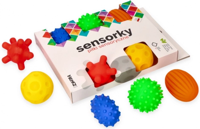 Descoperă o jucărie distractivă și educativă pentru bebeluși și copii mici: mingiuțele senzoriale Sensorky în set de 5 bucăți. Fiecare minge are o textură și o formă diferită pentru stimulare tactilă, dezvoltarea motricității fine și coordonarea mână–ochi. Suprafața moale, anti-alunecare, este plăcută la atingere, sigură pentru copii încă de la naștere și excelentă pentru strâns, rostogolit și masaj.