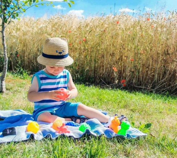 Folosește-le pentru explorare liberă, primele încercări de transfer dintr-o mână în cealaltă, exersarea rostogolirii și aruncării și pentru un masaj relaxant delicat al burticii, spatelui sau tălpilor. Texturile variate ajută creierul să proceseze corect stimulii tactili și aduc copiilor liniște în timpul jocului și înainte de culcare.