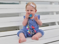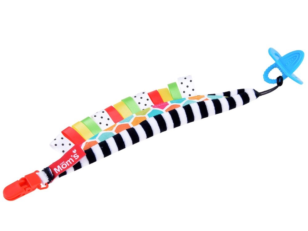 - Prevenirea pierderii suzetei, stimulare senzorială, alinare în timpul erupției dentare
