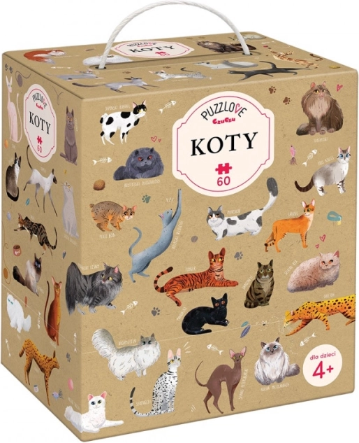 Miau, miau! Pisicile amuzante și misterioase îi invită pe copii la joacă cu puzzle-ul mare din 60 de piese, care prezintă pisici din rase diferite. Antrenează-ți răbdarea și spiritul de observație cu această motivație grozavă pentru activități distractive. CzuCzu știe cât de molipsitoare este bucuria asambării puzzle-ului!